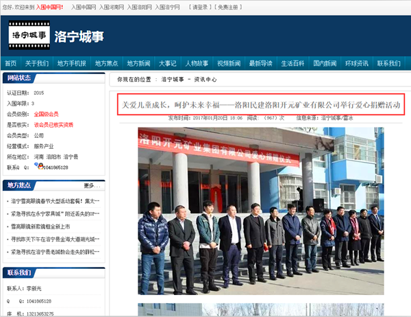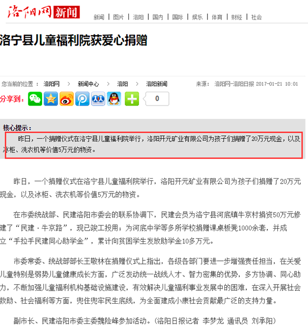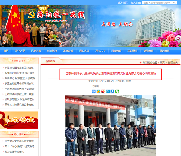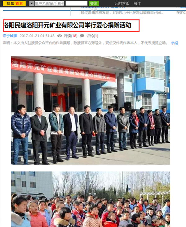 弘揚社會正能量 愛心事業(yè)美名揚——洛陽開元礦業(yè)集團善舉引起國內各大媒體高度關注